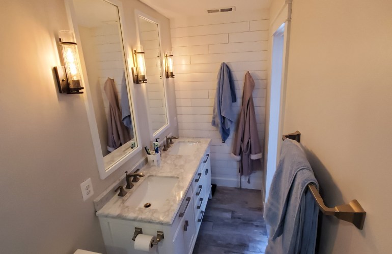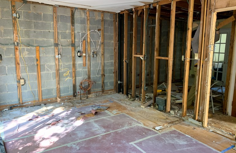 - Start with your measurements. Determine how big your space is, how many benches you want and how you want them laid out. We went with one long and one short to maximize our space and materials. We had space for two benches to take up about 8 feet and 4 feet respectively in length. We also knew that we didn’t want to make custom cushions, so we based the width off of a standard cushion size we found online. The ones we liked came in 4 foot sections and the wood comes in 8 foot sections. Perfect!